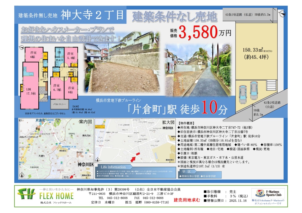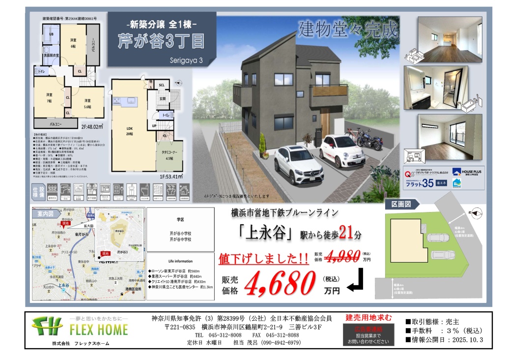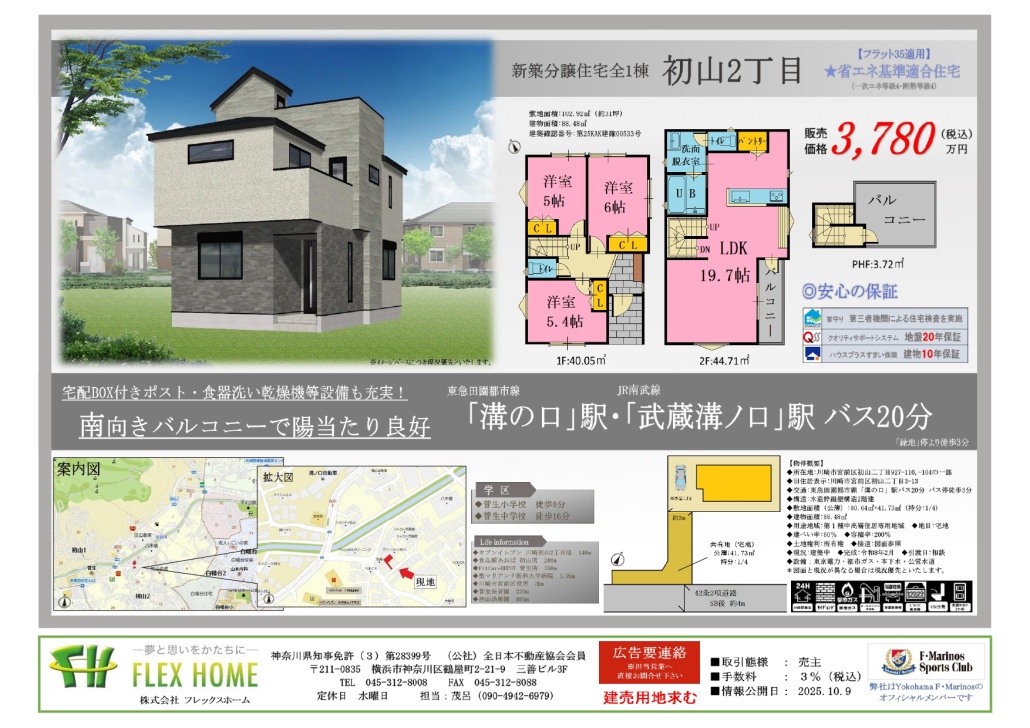 NEWS&INFORMATION 最新のニュースを更新しております READ MORE 2025.11.16 NEW 神大寺2丁目(1区画)公開しました! 2025.11.07 上菅田町(全2区画)B区画 お値下げしました! 2025.10.30 芹が谷3丁目(全1棟)堂々完成!値下げしました! 2025.10.16 初山2丁目(全1棟)公開しました! REALESTATE 販売物件 フレックスホームのプロジェクト物件シリーズ READ MORE SALESRESULTS 分譲実績 これまでに販売を行った分譲実績のご紹介 READ MORE FLEX'SADVANTAGE フレックスホームの強み 他社にはない5つの強みをご紹介いたします REALESTATEPURCHASE 不動産買取 自社にて高価&スピード買取いたします ABOUTTHEBUILDING フレックスホームの建物について EQUIPMENTSPEC. 建物設備・仕様 暮らしを彩る充実した建物設備 AFTERSERVICE アフターサービス 安心のサービスがございます HOUSEINSURANCE 住まいの保険 住まいに関する保険について INSPECTIONAGENCY 検査機関 検査状況をご確認いただけます COMPANYINFORMATION フレックスホームの企業情報です ABOUTCOMPANY 会社案内 フレックスホームの会社案内 CSRACTIVITIES CSR活動 活動内容を掲載しております RECRUITINFO. 採用情報 お問い合わせお待ちしております RECOMMENDREALESTATE フレックスホームおすすめの暮らしやすさを追求した物件シリーズです READ MORE 新築一戸建て 【4LDK】 横浜市港南区芹が谷3丁目 横浜市営地下鉄ブルーライン「上永谷」駅 徒歩21分 4,680万円(税込) 新築一戸建て 全1棟 【3LDK】 川崎市宮前区初山2丁目 東急田園都市線「溝の口」駅 バス20分停歩3分 3,780万円(税込) 新築一戸建て 【4LDK】 大和市下鶴間 東急田園都市線「つきみ野」駅 徒歩12分 5,480万円(税込) 売地 全1区画 【150.33㎡】 横浜市神奈川区神大寺2丁目 横浜市営地下鉄ブルーライン「片倉町」駅 徒歩10分 3,580万円 新築一戸建て 全2棟 【4LDK】 相模原市南区東林間7丁目 東急田園都市線「中央林間」駅 徒歩12分 5,680万円(税込) 土地条件なし 【150.58㎡】 横浜市保土ケ谷区上菅田町 相鉄本線「西谷」駅 バス8分停歩5分 2,980万円 READ MORE SALES RESULTS これまでにプロジェクトを行った分譲実績のご紹介です READ MORE SOLD OUT 新築一戸建て 全6棟 【4LDK】 川崎市宮前区有馬5丁目 東急田園都市線「鷺沼」駅 徒歩18分 SOLD OUT SOLD OUT 新築一戸建て 全2棟 【4LDK】 横浜市旭区さちが丘 相鉄本線「二俣川」駅 徒歩8分 SOLD OUT SOLD OUT 新築一戸建て 全3棟 【4LDK】 横浜市旭区本村町 相鉄本線「二俣川」駅 徒歩7分 SOLD OUT SOLD OUT 新築一戸建て 全2棟 【4LDK】 横浜市港南区日野2丁目 横浜市営地下鉄ブルーライン「港南中央」駅 徒歩12分 SOLD OUT SOLD OUT 新築一戸建て 全2棟 【4LDK】 横浜市金沢区町屋町 京急本線「金沢文庫」駅 徒歩19分 SOLD OUT SOLD OUT 新築一戸建て 全1棟 【3LDK】 横浜市港北区新吉田東4丁目 横浜市営地下鉄グリーンライン「高田」駅 徒歩14分 SOLD OUT READ MORE