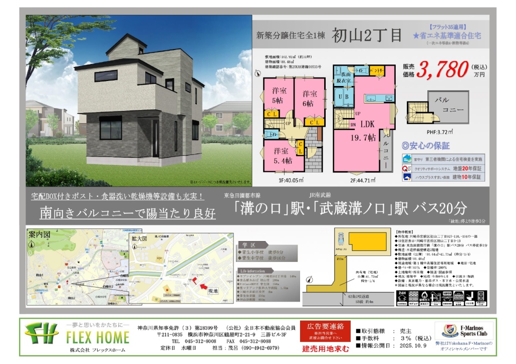 NEWS&INFORMATION 最新のニュースを更新しております READ MORE 2025.10.16 NEW 初山2丁目(全1棟)公開しました! 2025.10.09 下鶴間(全1棟)公開しました! 2025.10.03 日限山3丁目(A区画)終了しました!おかげさまで全区画終了です! 2025.10.03 芹が谷3丁目(全1棟)公開しました! REALESTATE 販売物件 フレックスホームのプロジェクト物件シリーズ READ MORE SALESRESULTS 分譲実績 これまでに販売を行った分譲実績のご紹介 READ MORE FLEX'SADVANTAGE フレックスホームの強み 他社にはない5つの強みをご紹介いたします REALESTATEPURCHASE 不動産買取 自社にて高価&スピード買取いたします ABOUTTHEBUILDING フレックスホームの建物について EQUIPMENTSPEC. 建物設備・仕様 暮らしを彩る充実した建物設備 AFTERSERVICE アフターサービス 安心のサービスがございます HOUSEINSURANCE 住まいの保険 住まいに関する保険について INSPECTIONAGENCY 検査機関 検査状況をご確認いただけます COMPANYINFORMATION フレックスホームの企業情報です ABOUTCOMPANY 会社案内 フレックスホームの会社案内 CSRACTIVITIES CSR活動 活動内容を掲載しております RECRUITINFO. 採用情報 お問い合わせお待ちしております RECOMMENDREALESTATE フレックスホームおすすめの暮らしやすさを追求した物件シリーズです READ MORE 新築一戸建て 全1棟 【3LDK】 川崎市宮前区初山2丁目 東急田園都市線「溝の口」駅 バス20分停歩3分 3,780万円(税込) 新築一戸建て 【4LDK】 横浜市港南区芹が谷3丁目 横浜市営地下鉄ブルーライン「上永谷」駅 徒歩21分 4,980万円(税込) 新築一戸建て 【4LDK】 大和市下鶴間 東急田園都市線「つきみ野」駅 徒歩12分 5,480万円(税込) 新築一戸建て 全2棟 【4LDK】 相模原市南区東林間7丁目 東急田園都市線「中央林間」駅 徒歩12分 5,980万円(税込) 土地条件なし 【150.58㎡】 横浜市保土ケ谷区上菅田町 相鉄本線「西谷」駅 バス8分停歩5分 3,180万円 READ MORE SALES RESULTS これまでにプロジェクトを行った分譲実績のご紹介です READ MORE SOLD OUT 土地条件なし 全2区画 【130.79㎡〜】 横浜市港南区日限山3丁目 横浜市営地下鉄ブルーライン「上永谷」駅 徒歩19分 SOLD OUT SOLD OUT 新築一戸建て 全6棟 【4LDK】 川崎市宮前区有馬5丁目 東急田園都市線「鷺沼」駅 徒歩18分 SOLD OUT SOLD OUT 新築一戸建て 全2棟 【4LDK】 横浜市旭区さちが丘 相鉄本線「二俣川」駅 徒歩8分 SOLD OUT SOLD OUT 新築一戸建て 全3棟 【4LDK】 横浜市旭区本村町 相鉄本線「二俣川」駅 徒歩7分 SOLD OUT SOLD OUT 新築一戸建て 全2棟 【4LDK】 横浜市港南区日野2丁目 横浜市営地下鉄ブルーライン「港南中央」駅 徒歩12分 SOLD OUT SOLD OUT 新築一戸建て 全2棟 【4LDK】 横浜市金沢区町屋町 京急本線「金沢文庫」駅 徒歩19分 SOLD OUT READ MORE