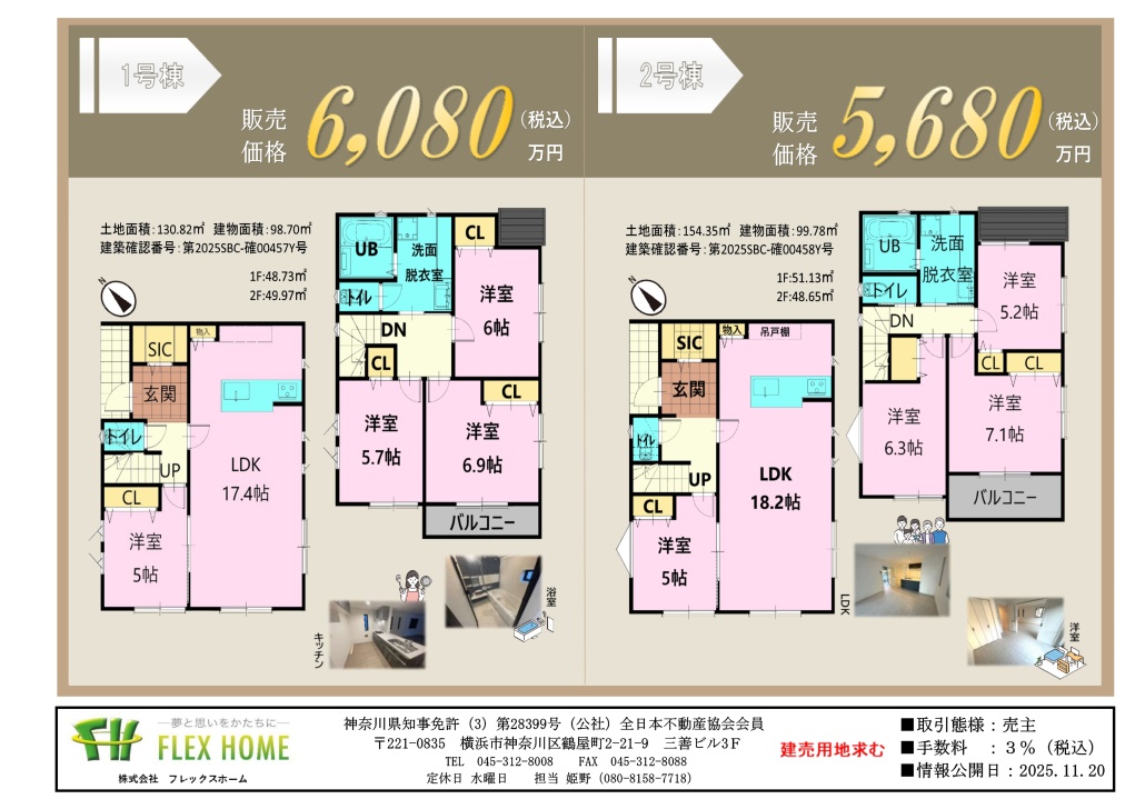 | 価格 | 5,680万円(税込)〜6,080万円(税込) | ||