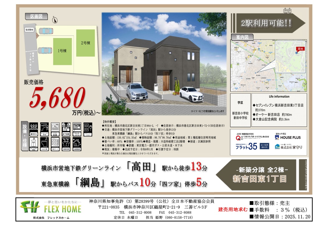 HOME >販売物件 フレックスホームおすすめの暮らしやすさを追求した物件シリーズです 現在9件の物件がございます! 並び替え 新着&更新順 価格が安い順 価格が高い順 全ての物件をチェック チェックした物件をまとめて 資料請求・見学予約 土地条件なし 全2区画 【125.39㎡〜】 横浜市港南区丸山台2丁目 横浜市営地下鉄ブルーライン「上永谷」駅 徒歩9分 4,680万円〜 売地 全2区画 【101.29㎡〜】 横浜市神奈川区神大寺2丁目 横浜市営地下鉄ブルーライン「片倉町」駅 徒歩9分 3,580万円〜 新築一戸建て 全1棟 【3LDK】 川崎市宮前区初山2丁目 東急田園都市線「溝の口」駅 バス20分停歩3分 3,780万円(税込) 新築一戸建て 【4LDK】 横浜市港南区芹が谷3丁目 横浜市営地下鉄ブルーライン「上永谷」駅 徒歩21分 4,680万円(税込) 新築一戸建て 【4LDK】 大和市下鶴間 東急田園都市線「つきみ野」駅 徒歩12分 5,480万円(税込) 土地条件なし 全1区画 【150.33㎡】 横浜市神奈川区神大寺2丁目 横浜市営地下鉄ブルーライン「片倉町」駅 徒歩10分 3,580万円 新築一戸建て 全2棟 【4LDK】 横浜市港北区新吉田東1丁目 横浜市営地下鉄グリーンライン「高田」駅 徒歩13分 5,680万円(税込)〜 新築一戸建て 全2棟 【4LDK】 相模原市南区東林間7丁目 東急田園都市線「中央林間」駅 徒歩12分 5,480万円(税込) 土地条件なし 【150.58㎡】 横浜市保土ケ谷区上菅田町 相鉄本線「西谷」駅 バス8分停歩5分 2,980万円 全ての物件をチェック チェックした物件をまとめて 資料請求・見学予約 並び替え 新着&更新順 価格が安い順 価格が高い順 現在9件の物件がございます!